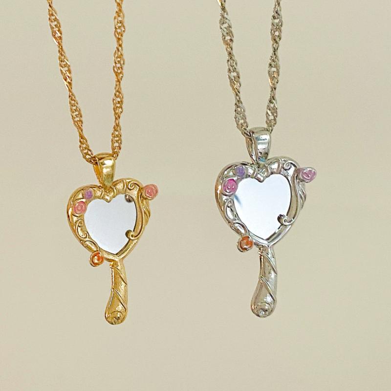 Neue Modische Herzförmige Spiegel Anhänger Halskette, Damen Süßes Temperament Feier Party Zubehör Geschenk