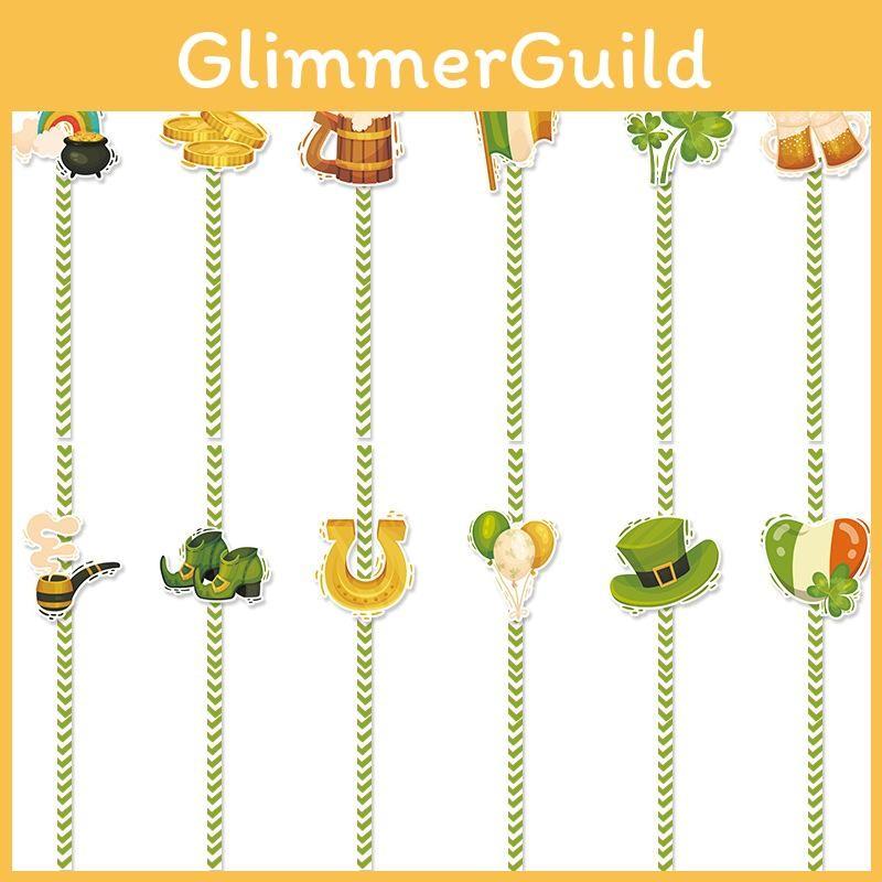 Patrick Theme St Clover Pattern Disposable Paper Straw Party Prop Decoration