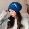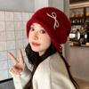 Sweet and Cute Bow Embroidered Knit Hat Autumn and Winter Versatile Warm Hat Outdoor Cold Protection Ear Protection Wool Hat