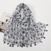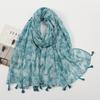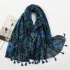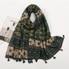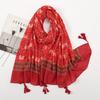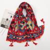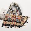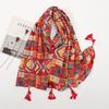Spring and Autumn New Bali Yarn Tassel Retro Printed Geometric Scarf Versatile Fashion Travel Sunscreen Shawl Silk Scarf Women