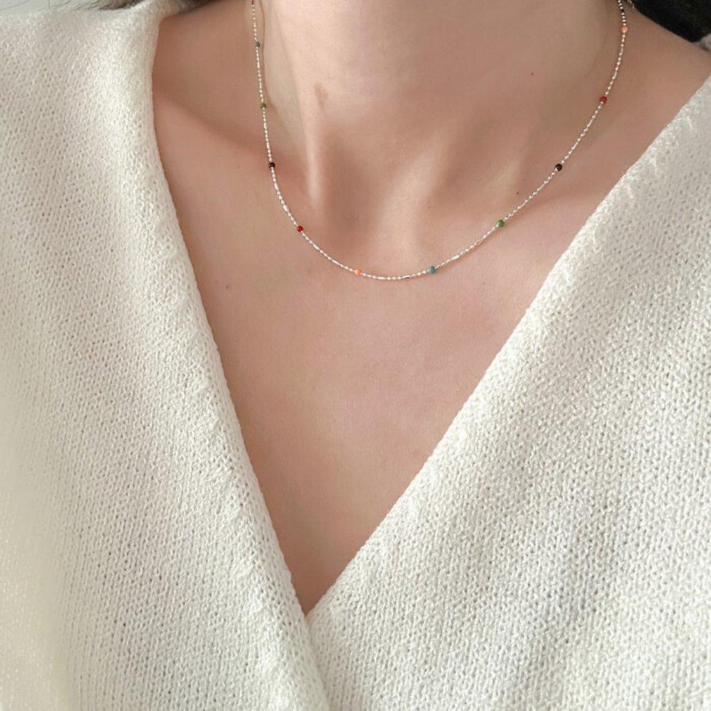 Berryoung / 925 Silver Color Ball Chain Necklace