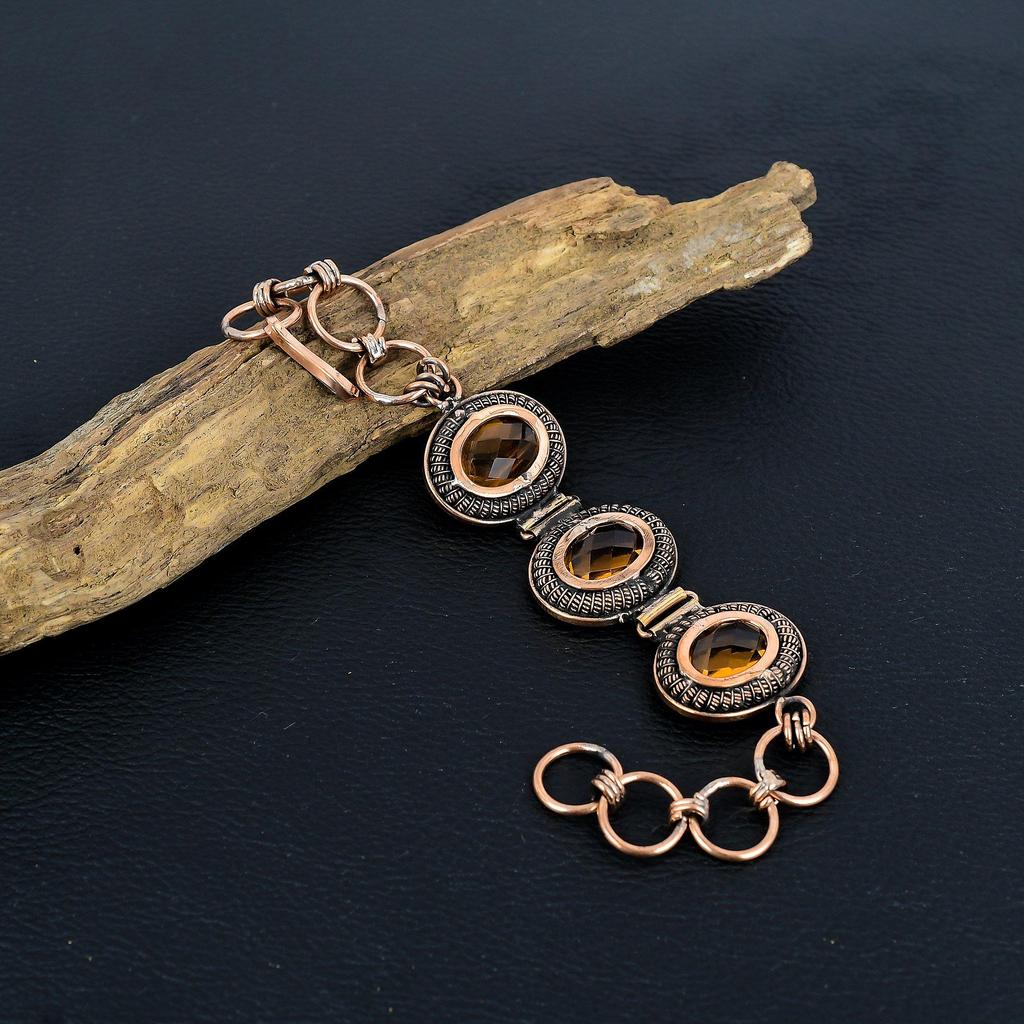 Honey Topaz Gemstone Jewelry, 999 Copper Wire Wrapped Bracelet Adjustable Bangle, Handmade Brand New Bangle Silver Jewelry For Gifts