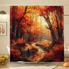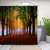 Waldlandschaft Duschvorhang Sonnenschein Wasserfall Grüner Bambus Nebel Dschungel Herbstliche Szenerie Badezimmervorhänge Badewannendekor Haken