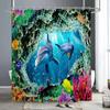 Ozeantiere Duschvorhänge Delfin Meeresschildkröte Fisch Koralle Unterwasserhöhle Landschaft Stoff Kinder Badvorhang Badezimmerdeko