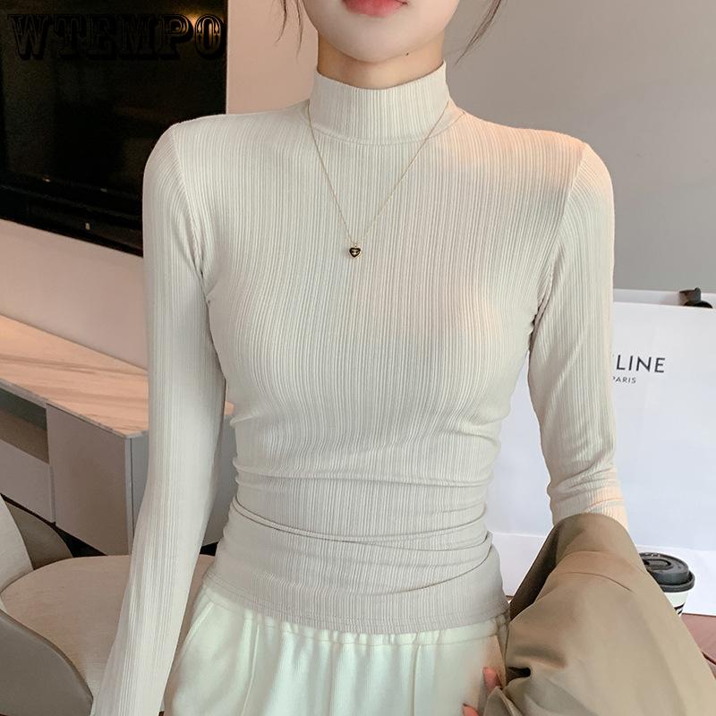 Schlanker Pullover für Damen Herbst und Winter mit Rollkragenpullover darunter Langärmliger lässiger und einfacher Strickpullover für Damen