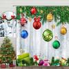 Christmas Ball Shower Curtain Christmas Pine Tree Gift Winter Snowflake Cartoon Family Polyester Fabric Bathroom Decor Curtains