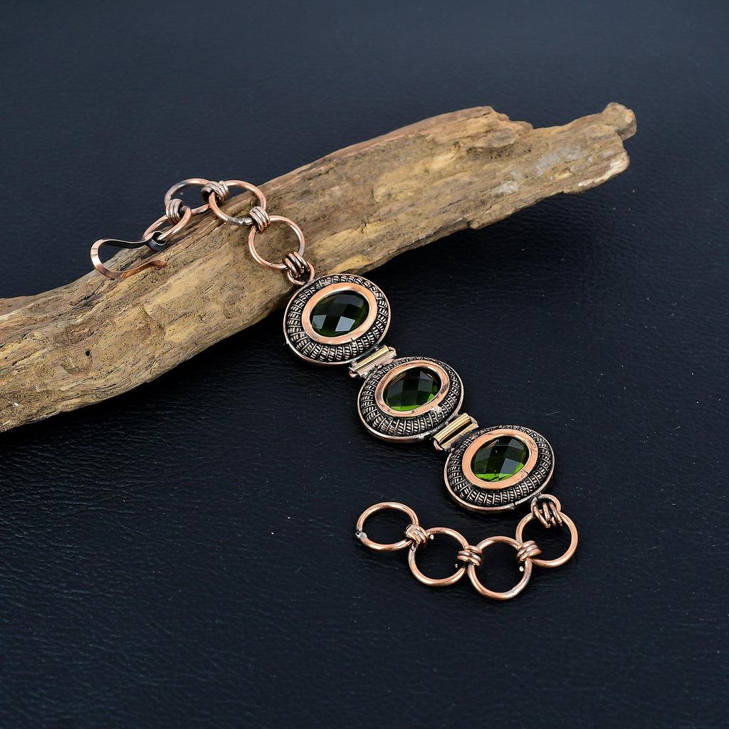 Peridot Armband, 999 Kupferdraht umwickelter Schmuck, Edelsteinarmband mit verstellbarer Kette, Geschenk für sie, handgefertigter zierlicher Schmuck
