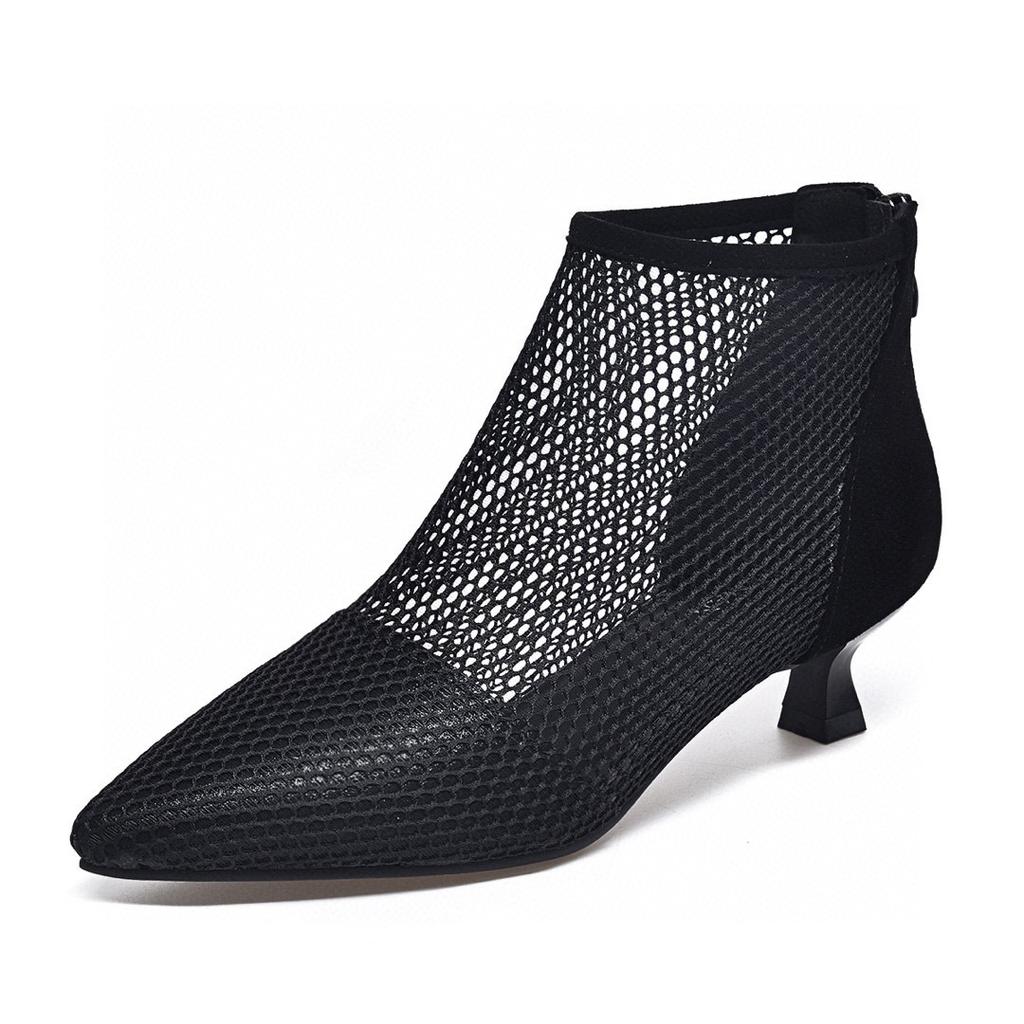 High Heels Damen 2025 Frühling neu Europäischer und Amerikanischer Stil feiner Absatz spitz zulaufend Mesh Römersandalen Netzstiefel atmungsaktive kleine Stiefel Einzelne Schuhe