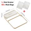 Küchenspülen-Sieb Abtropfregal Mehrzweck-Aufbewahrungsregal Küchenabfallspüle Rückstands-Netzregal mit 50/100 Stück Filternetz