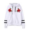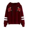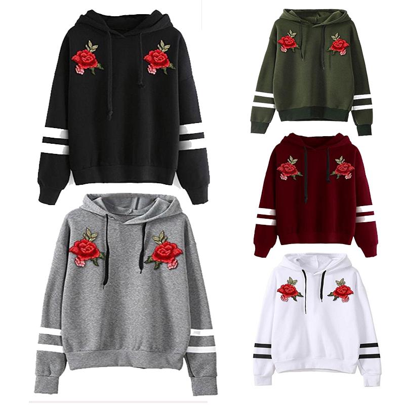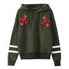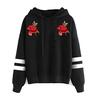 Women Rose Embroidery Hooded Pullover Long Sleeves Loose Sweatshirt