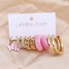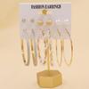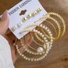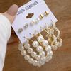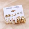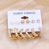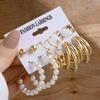 European & American Geometric C-Shaped Hoop Earrings: 6-Piece Gold & Pearl Wire-Wrapped Set for Women