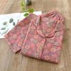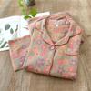 Erleben Sie ultimativen Komfort und Stil mit diesem Damenpyjama mit ethnischem Blumendruck. Diese Pyjamas sind aus reiner Baumwolle gefertigt und mit einer doppelten Gazeschicht versehen, wodurch sie perfekt für die milden Temperaturen im Frühling und Herbst sind.. Mit langen Ärmeln bieten sie ideale Bedeckung und Wärme.. Speziell für Frauen mittleren Alters und ältere Frauen entworfen, bieten diese Pyjamas eine gemütliche und dennoch elegante Option für erholsame Nächte.