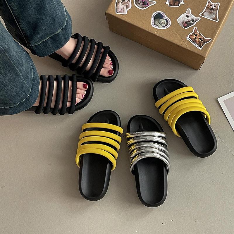 Retro-Design dünne Hausschuhe Damen Sommer runder Kopf Mode vielseitig lässig mit Rock Tasche Kopf kühle Hausschuhe
