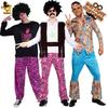 Halloween Men's Retro 70 Disco Hip Hop Suit Hippie Elvis Printed Shirt Set