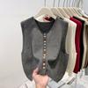 Mode Elegant Locker Ärmellos Gestrickte Strickjacke Pullover Weste Damen 2025 Herbst Winter Lässig Knöpfe Weste Einfarbig Tops Kleidung