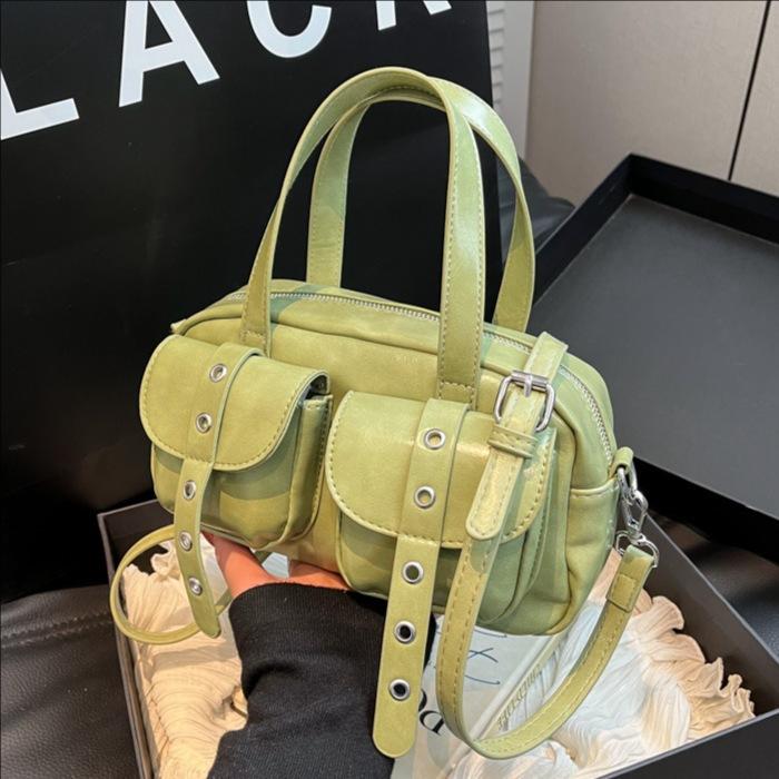 Schicke PU Hand-, Schulter- und Umhängetasche mit Mehrfachtaschen-Design: Gefertigt aus PU mit glatter Textur, mit mehreren Vordertaschen und Metalnieten-Details, die einen Hauch von Kantigkeit und Praktikabilität verleihen.. Entworfen für Hand-, Schulter- oder Umhängetragen. Ideal, um Alltagsaktivitäten, Arbeit oder Freizeitveranstaltungen eine stilvolle Note zu verleihen.