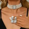 DIEZI ElegantFashion Imitation Pearl Crystal Rhinestone Choker Necklace Stud Earrings Vintage Jewelry Sets Party Gift Jewelry