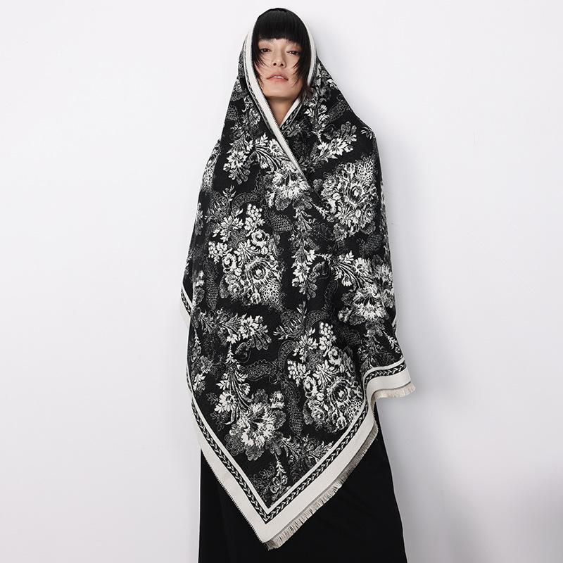 Herbst- und Winterblumen Imitationskaschmirschal Damen Winter Verdickter Kälteschal Schal Warm