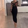 Rose Embroidery Mesh Patchwork Long sleeve Temperament Elegant Dress Embroidered Mesh Dress
