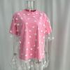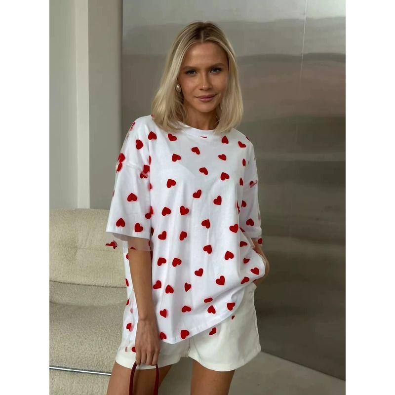 European and American Fashion Love Heart Mesh Patchwork T-shirt Loose round Neck Top Printed Loose T-shirt