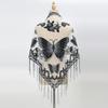 New tassel triangle scarf, solid color hollow lace butterfly embroidered triangle shawl scarf for women