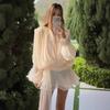 Spring and Summer 2025 Women clothes Temperament Pleat Mesh Puff sleeve Short dress Socialite Vacation Dress