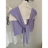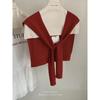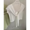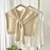 Solid color knitted small shawl fashionable versatile hollow high-end atmosphere white temperament outer small shawl