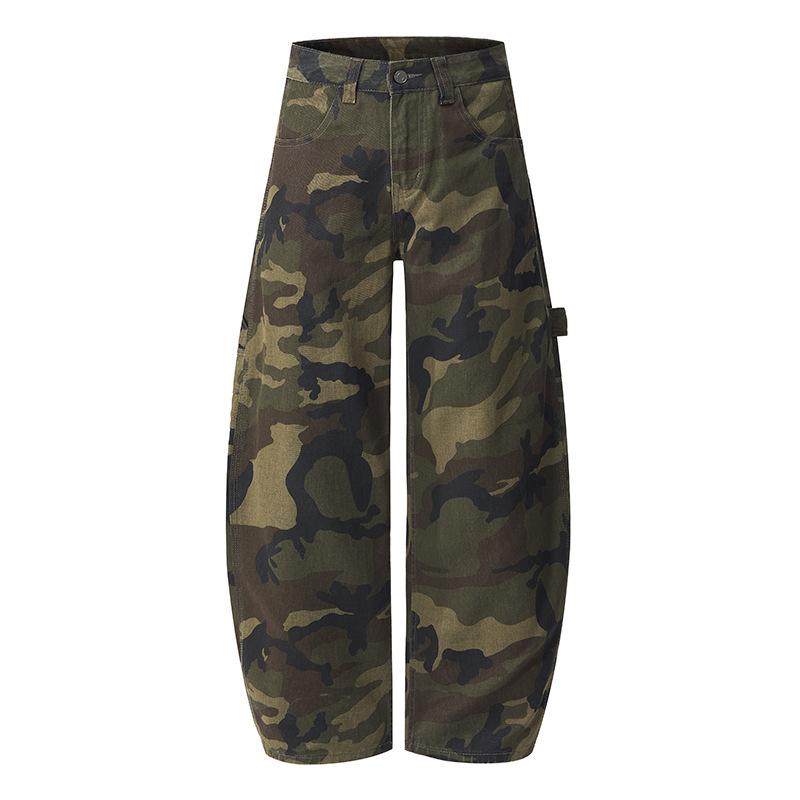American Camouflage Scimitar Pants for Men and Women Couples Loose and Versatile Curved Jeans Work Pants