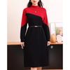 Semi-turtleneck contrasting sweater skirt autumn and winter elegant temperament waist new bottom knitted dress women