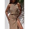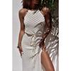 Knitted Hollow Dress Knitted Cut-out Dress Drawstring Strap Dress Holiday Style Beach Skirt