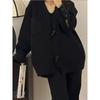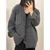 Autumn and winter new large size loose lazy wind horn buckle knitted cardigan top women wear sweater coat thick
