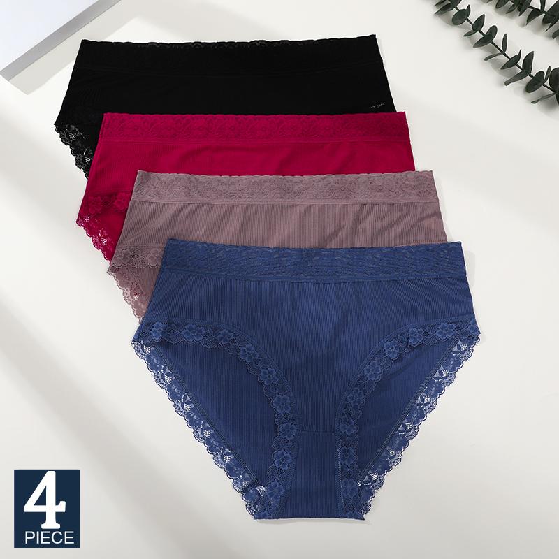 4Pcs Plus Size Panties L-4XL Lace High Elastic Underwear Sexy Comfortable Briefs Seamless Mom Lingerie Mommy Shorts