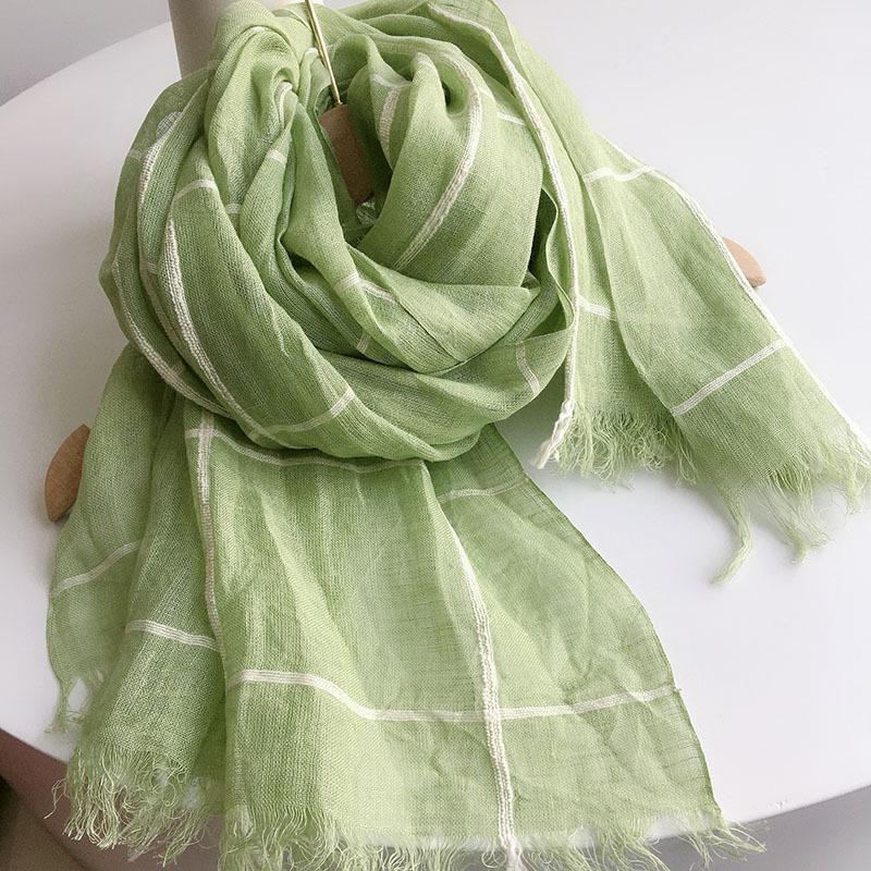 Japanischer Damen Leinen Baumwolle Großer Karoschal Vielseitiges Temperament Sonnenschutz Seidenschal Literarischer Nackenschal