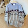 Korean Fashion Autumn Winter Women Basic Sweater O Neck Contrast Color Knitting Pullover Long Sleeve Thick Warm Knitted Outerwear