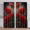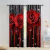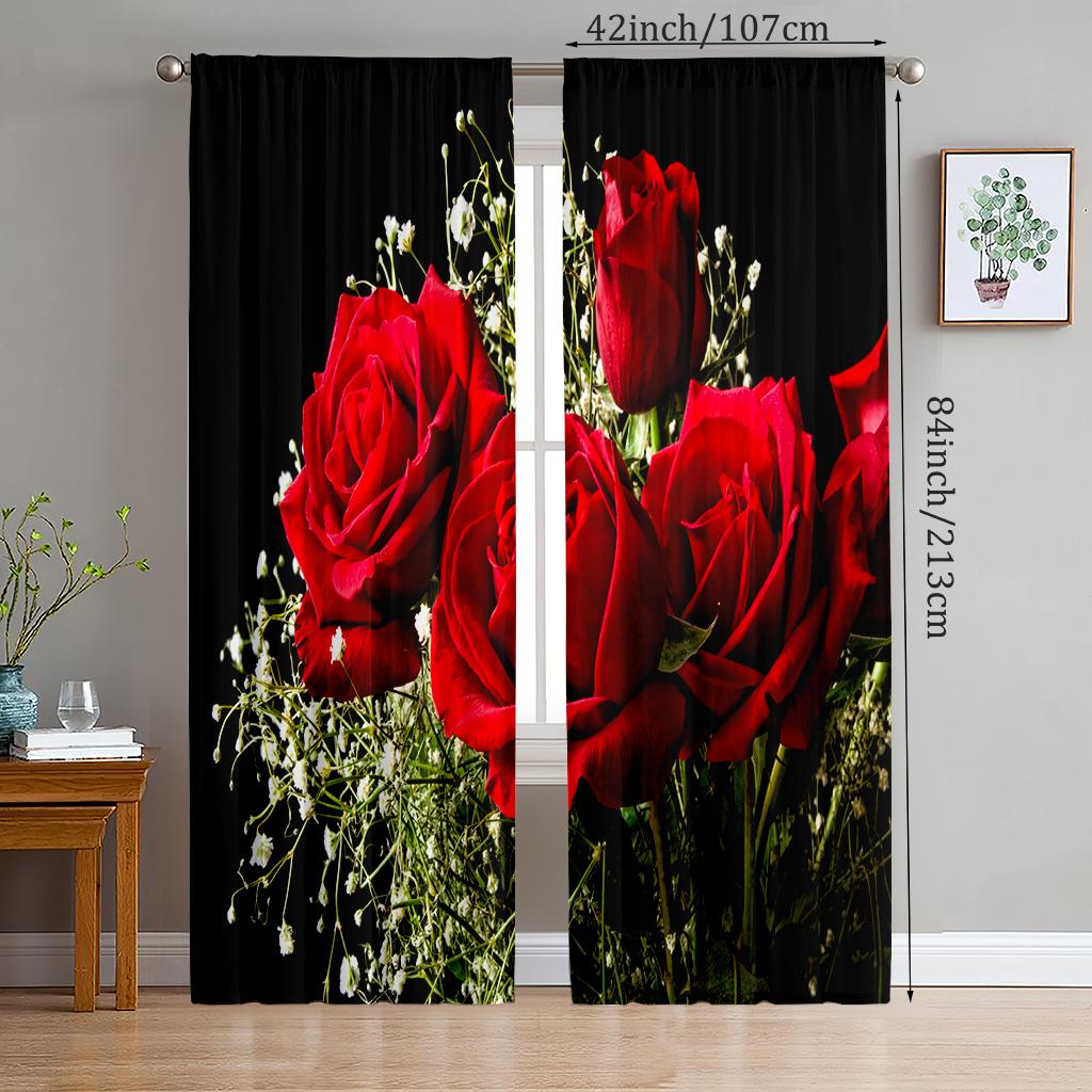 2 Stück - Schwarzer Grund rote Rose Polyester Vorhänge, Badezimmer, Schlafzimmer, Wohnzimmer und Familienzimmer dekorative Vorhänge