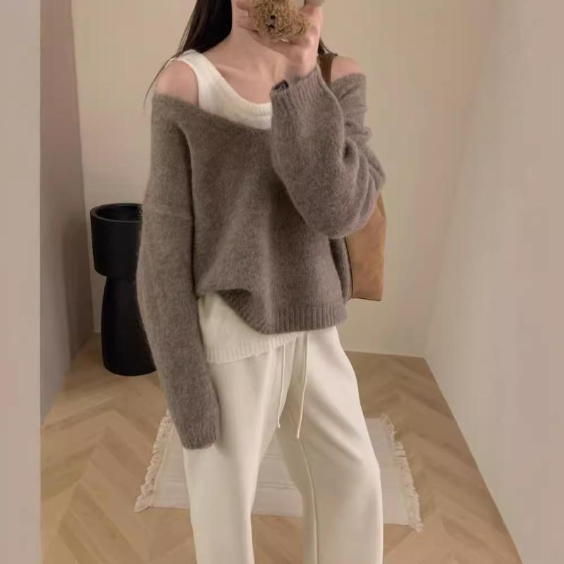 Lockerer und lässiger vielseitiger Strickpullover für Damen, Herbst und Winter, neue Mode, altersreduzierend und figurformend, Rundhals-Pullover