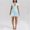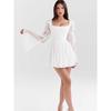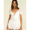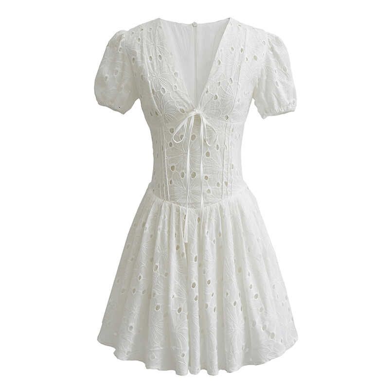 House Same Style Super Nice French style Sweet Slim White Dress Pure Desire Deep V Hollow Embroidery Puff sleeve Slim dress
