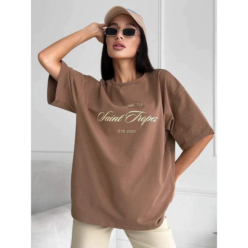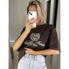 Loose Printed T-shirt Top Western Style New Fashion Print Letter Loose Cotton T-shirt Top