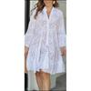 2024 European and American Cross-Border Spring Summer Amazon Solid V-neck Loose Embroidery Hollow Lace Flower Sexy dresses for women