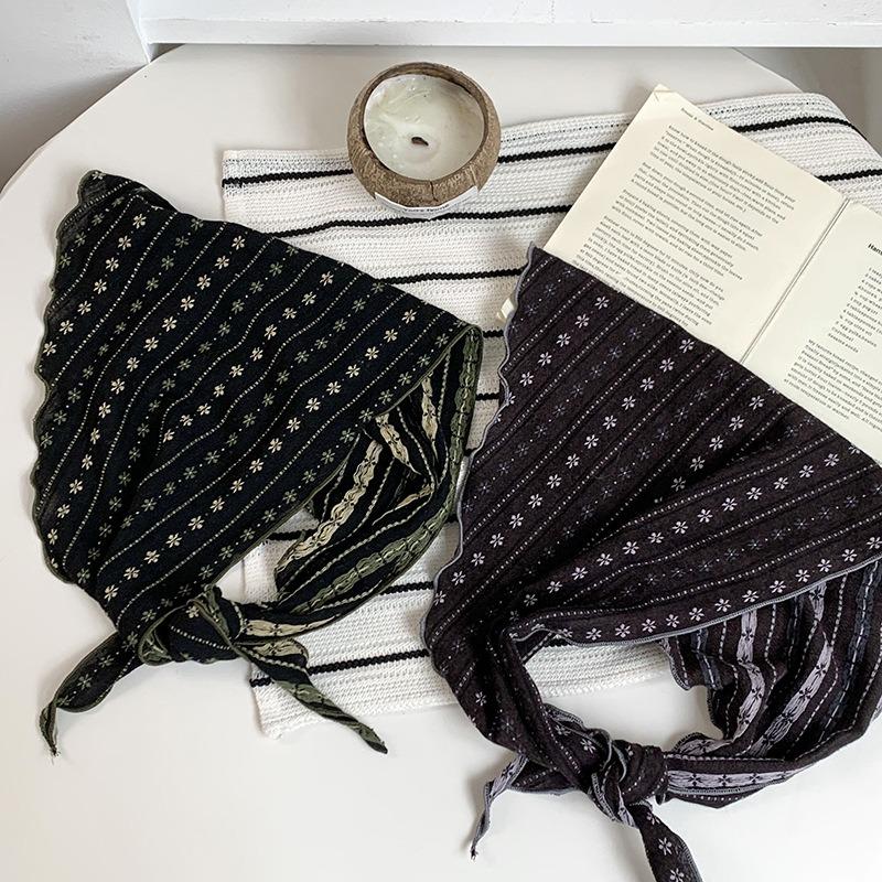 Triangle scarf scarf women's spring and summer new cotton and linen floral headband versatile bag head scarf headband women's silk scarf