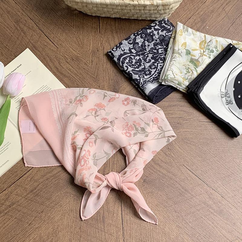 Georgette silk scarf neck small square scarf neck protection scarf fresh floral headscarf summer women's pastoral headband hair accessories