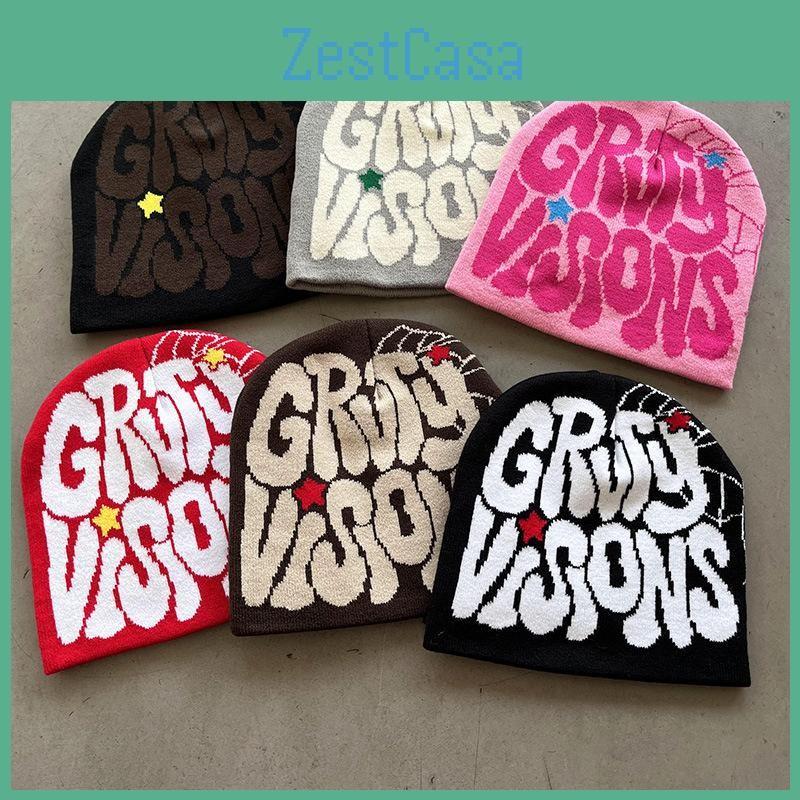Visions Letters Grvty Knit Beanie Hats Winter Embroidered Streetwear Casual
