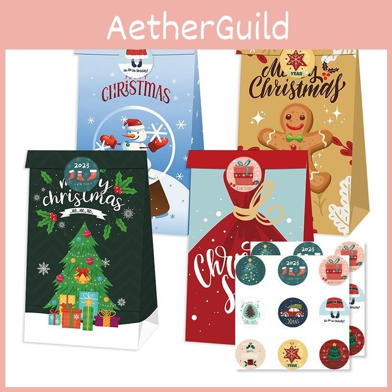 Christmas Decor Paper Bags With Santa Claus Gingerbread Man Print For Daily