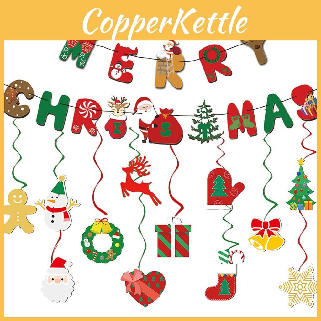 Party Hanging Holiday Decorations With Spiral Flags For Merry Christmas Theme