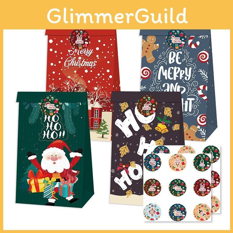 Christmas Paper Decor Bags With Santa Claus Gingerbread Man Print For Daily