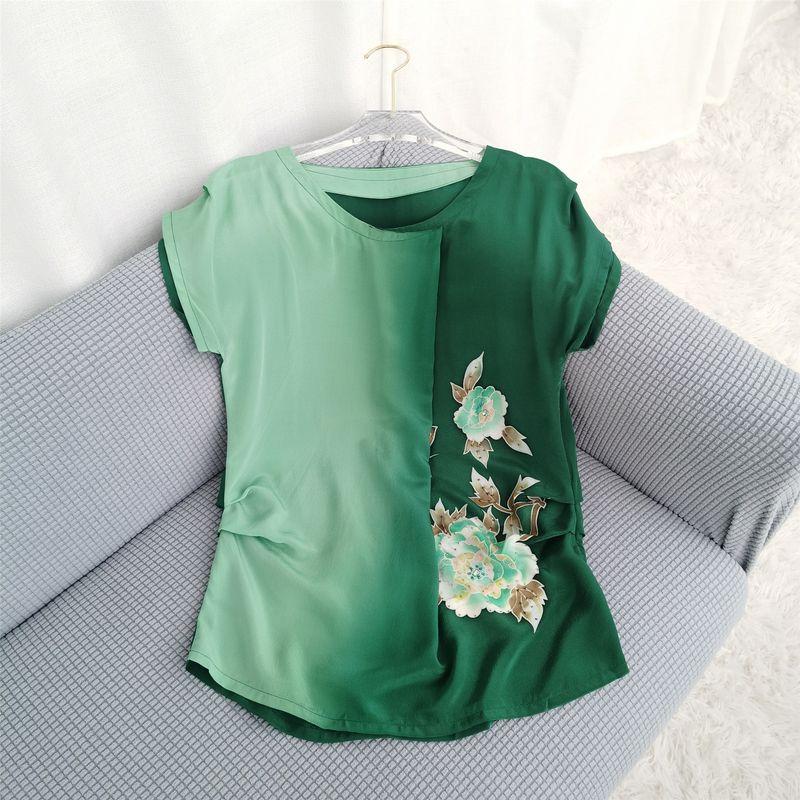 100% Mulberry Silk Women's Top Loose T-shirt Short-Sleeved Silk Tops Summer Silk Crepe De Chine Tops Women's Big Sale