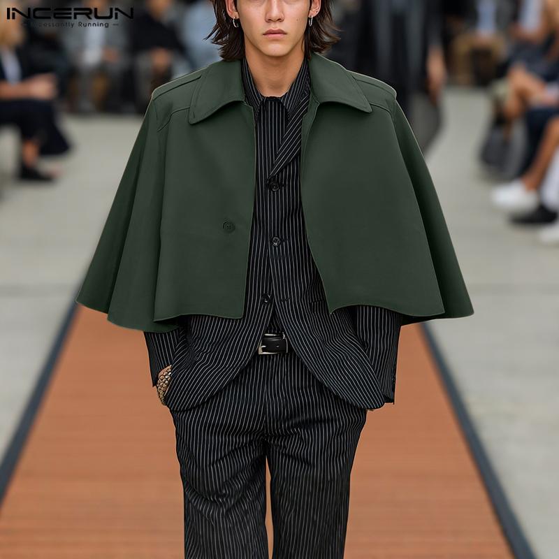 INCERUN Men Lapel Open Front Cloak Casual Loose Cropped Cape Coats