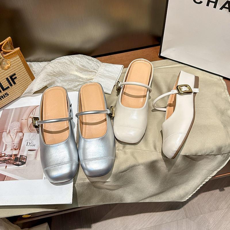 Damen Sommerbekleidung neue modische und vielseitige Innenhöhen-Tasche Kopf Temperament silberne Einzelschuhe coole Hausschuhe