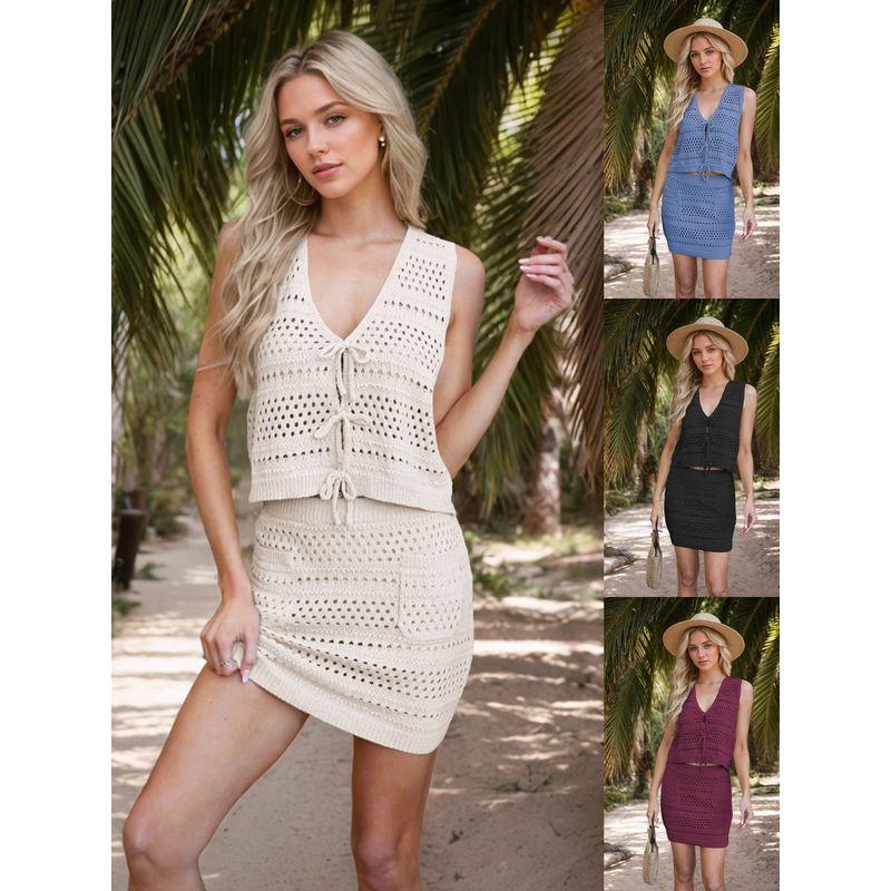 Strap V-neck Vest Casual Skirt Set Straps V-neck Vest Casual Skirt sets