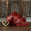 Gürtel Herren Trendy Retro und Mode All-Matching First Layer Reines Rindsleder Gewebtes Leder Messingschnalle Gewebter Jeansgürtel